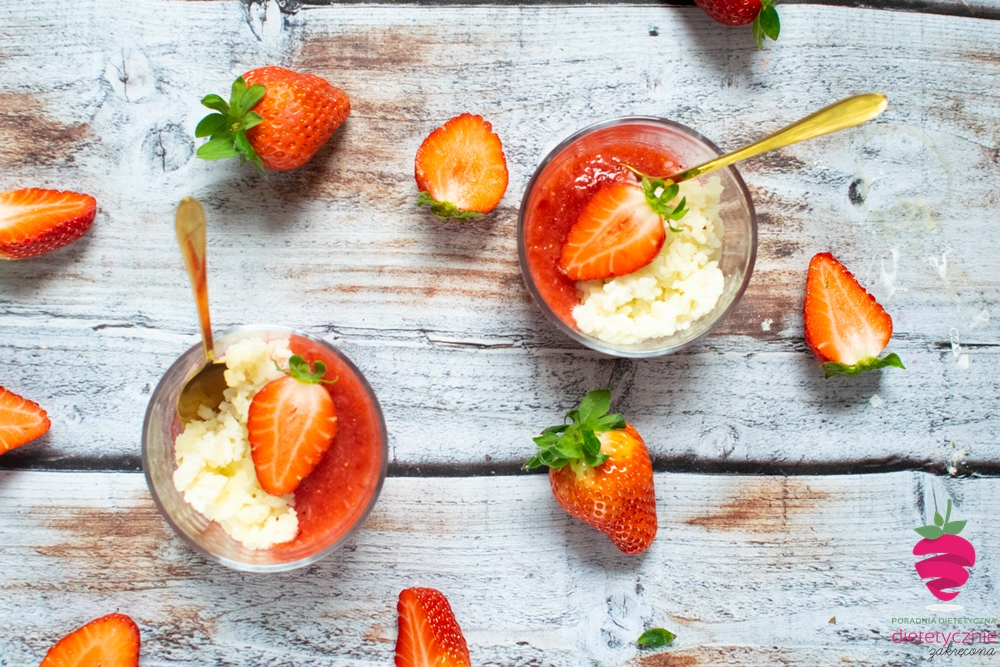 Dietetyczny deser ryżowy a’la Belriso z musem truskawkowym