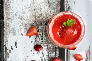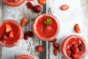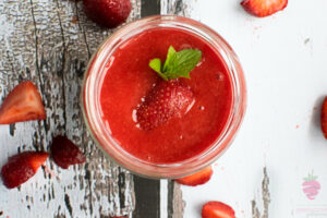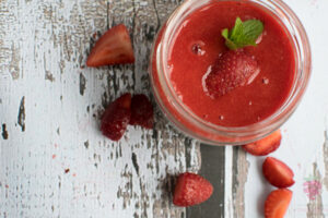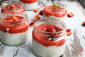 Gdy chia będzie gotowa, owoce miksujemy na gładką masę, w razie potrzeby słodzimy ksylitolem.