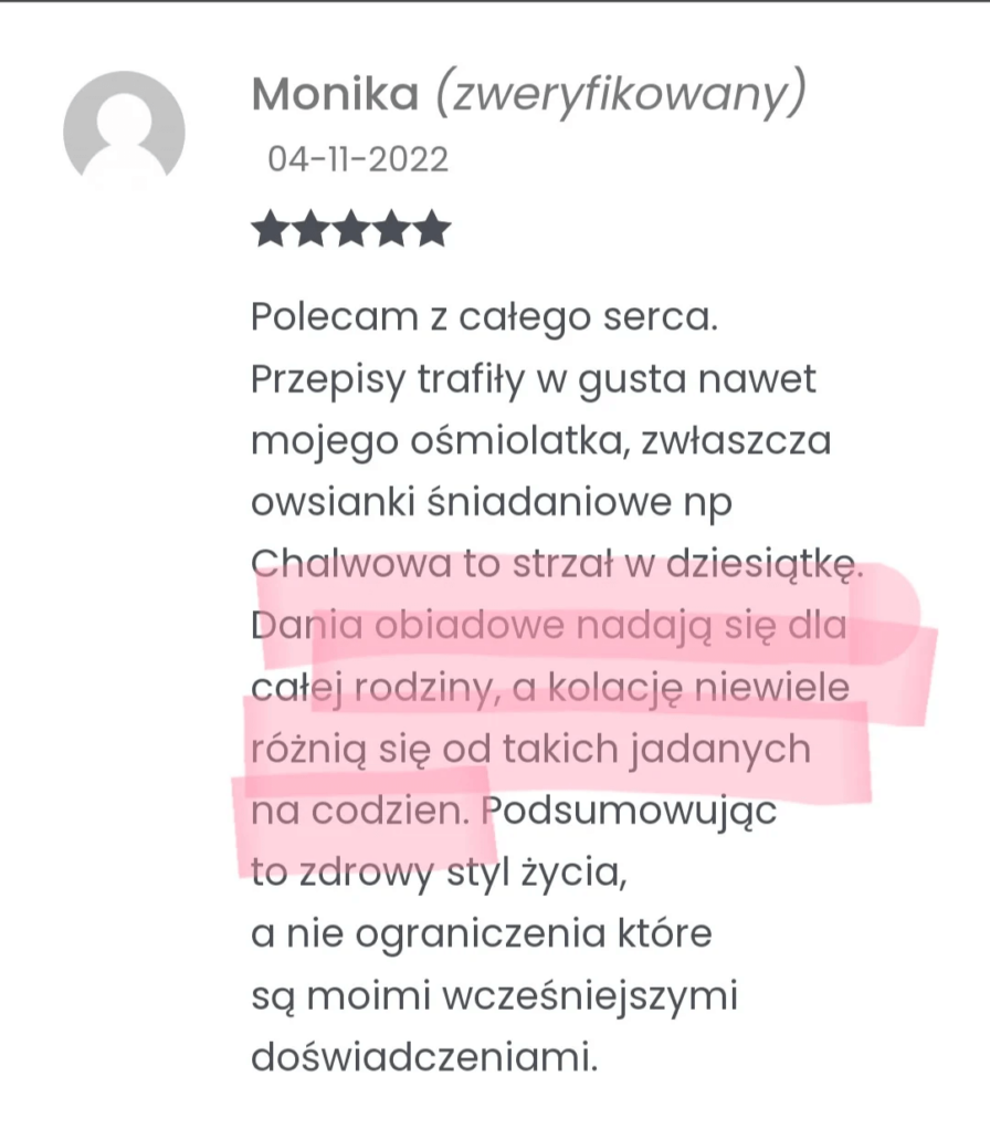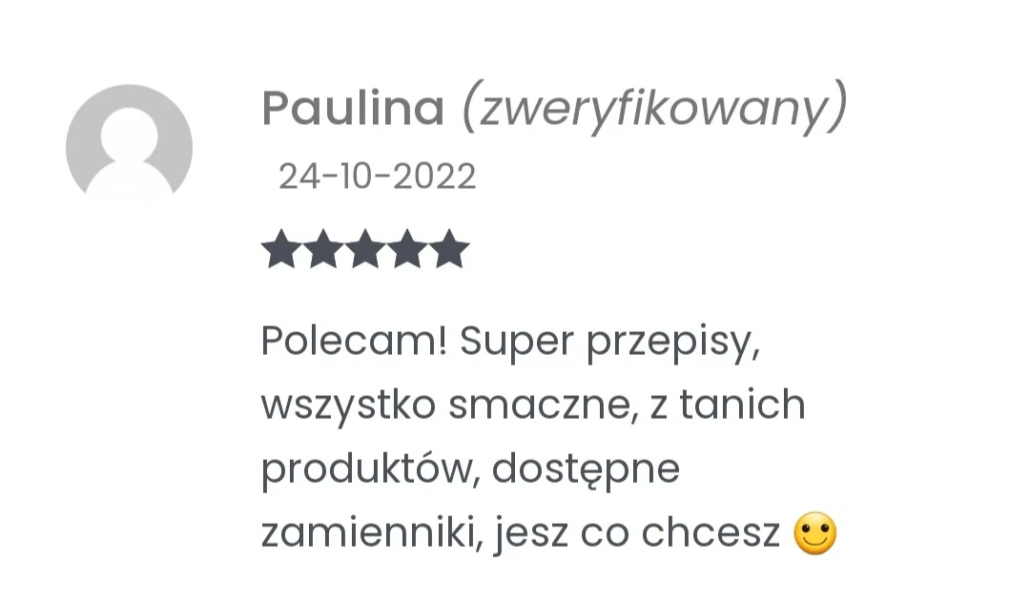 Posiłki są łatwe w przygotowaniu, przepyszne (Twoi domownicy będą zachwyceni) a dodatkowe materiały ułatwiają korzystanie z jadłospisu.