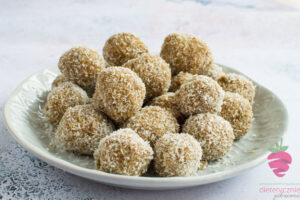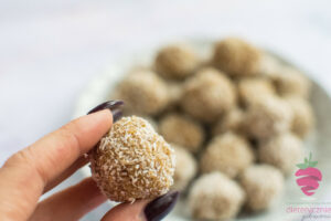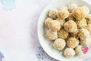 Następnie lepimy kuleczki, obtaczamy w wiórkach kokosowych 🙂
