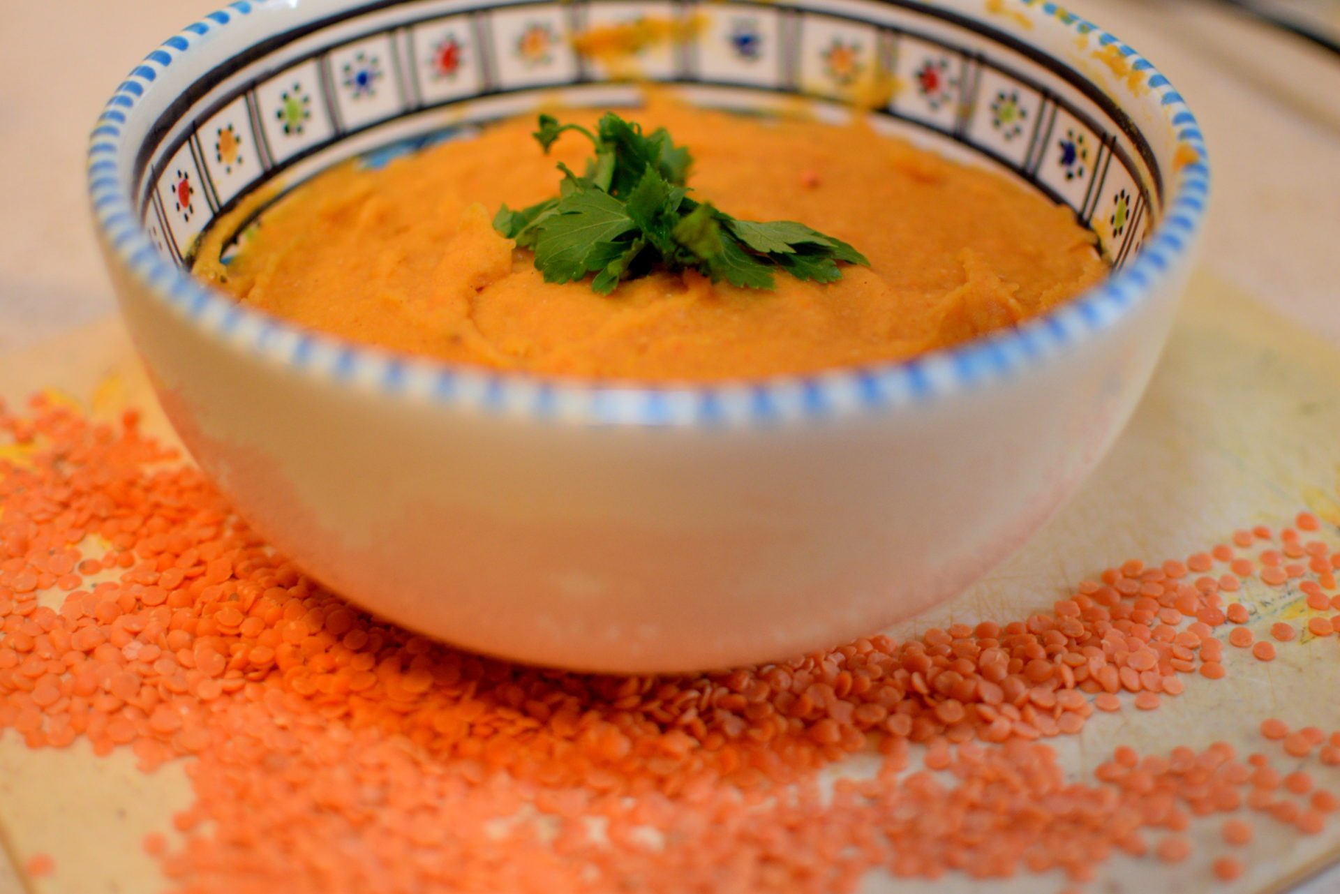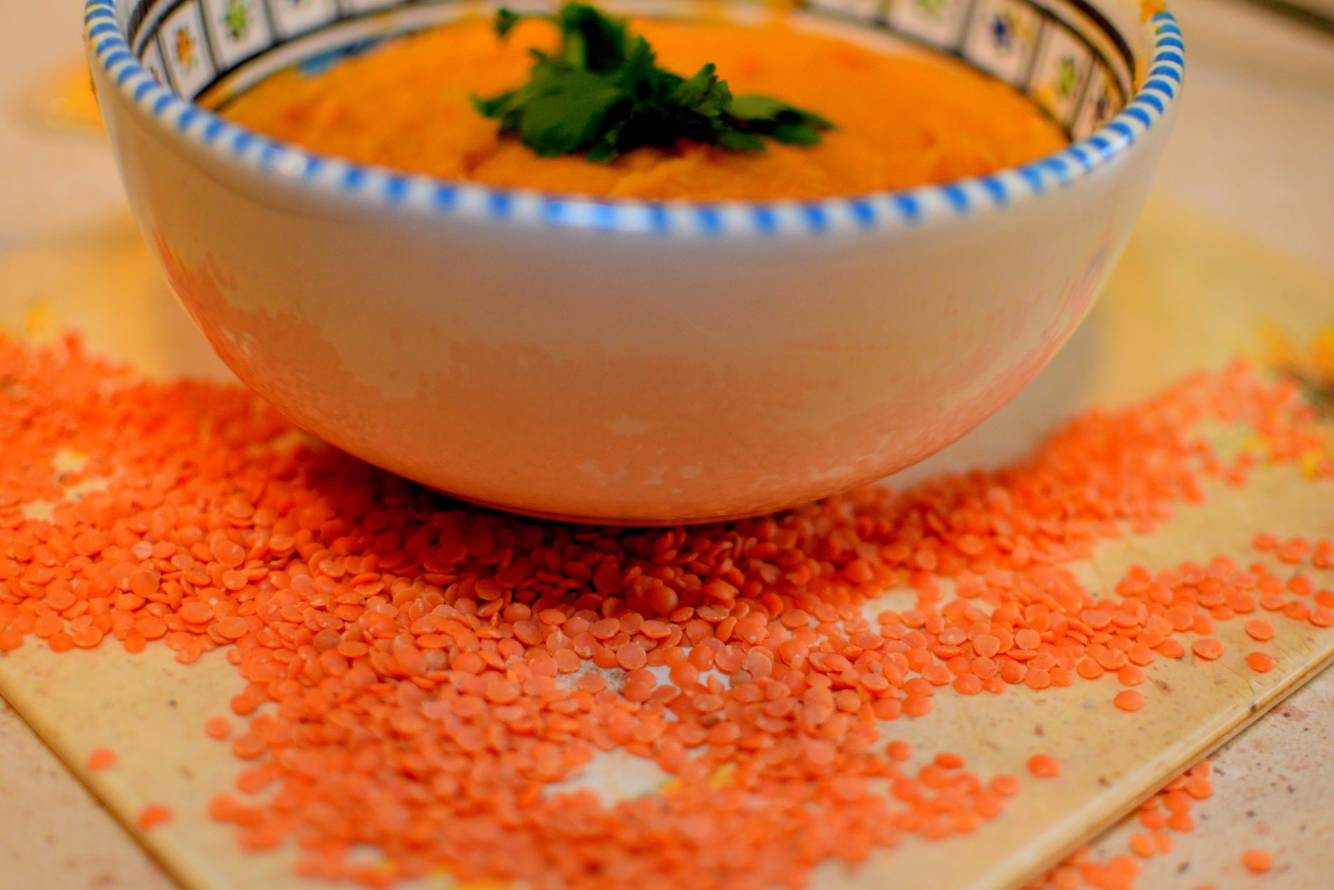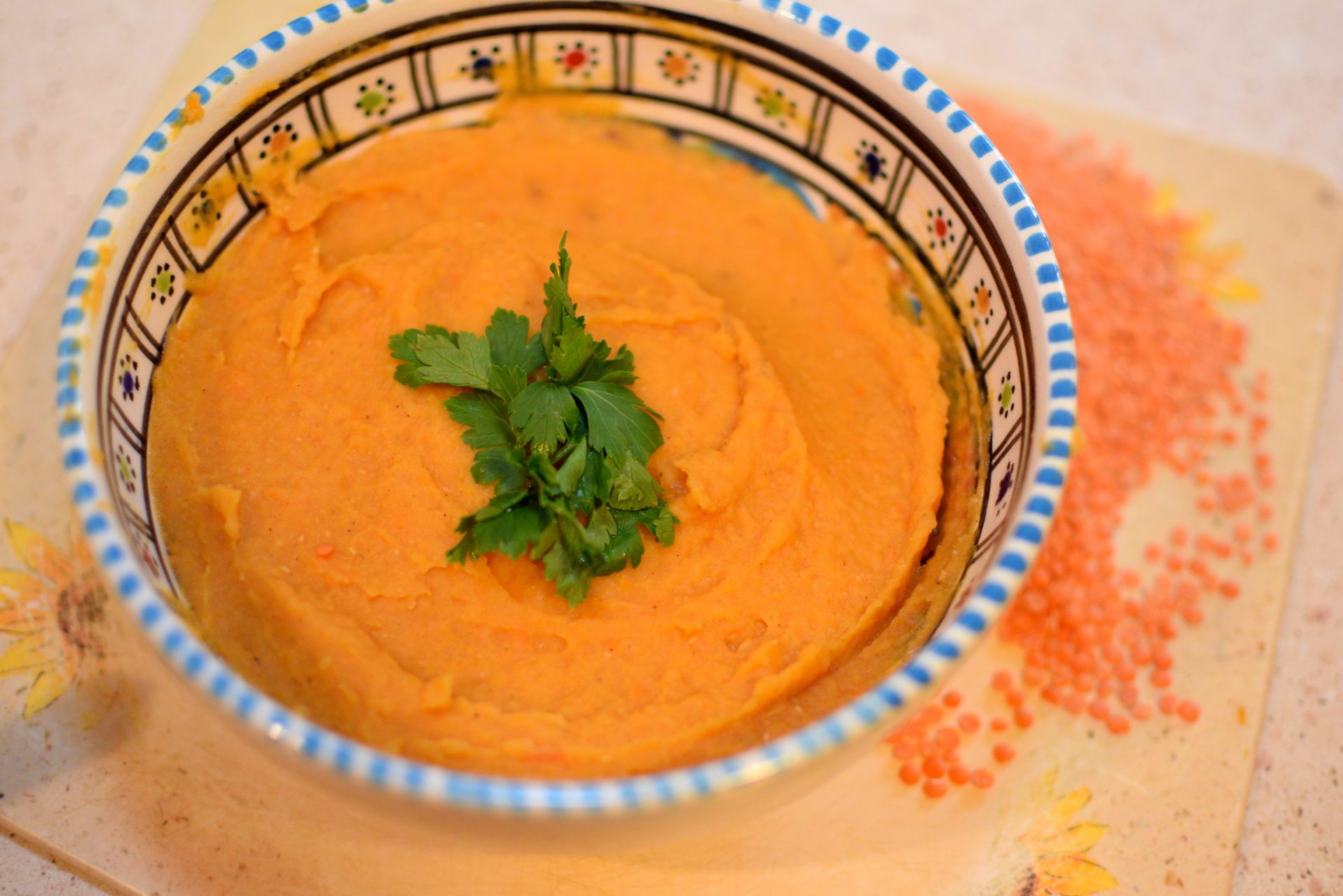 Dzisiaj zupa krem z czerwonej soczewicy. Soczewica należy do roślin strączkowych, warto włączyć je do naszej diety przynajmniej raz w tygodniu. Są niezwykle cennym źródłem węglowodanów, błonnika, składników mineralnych takich jak wapń, fosfor, żelazo, magnez potas, cynk oraz witamin- beta-karotenu, B1, B2, B6, PP.